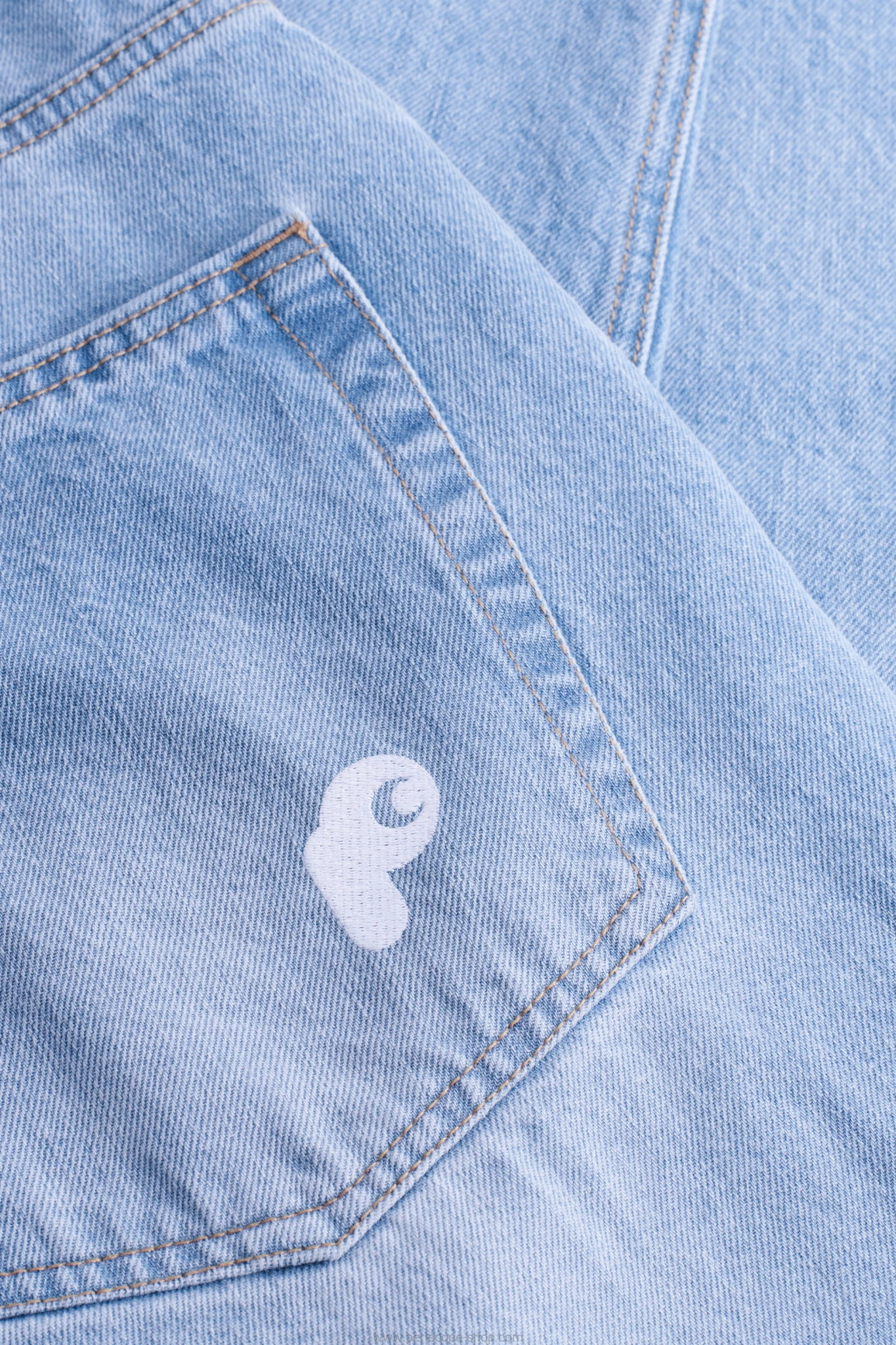 Szerokie, jeansowe spodnie o luźnym kroju z haftem na tylnej kieszeni.